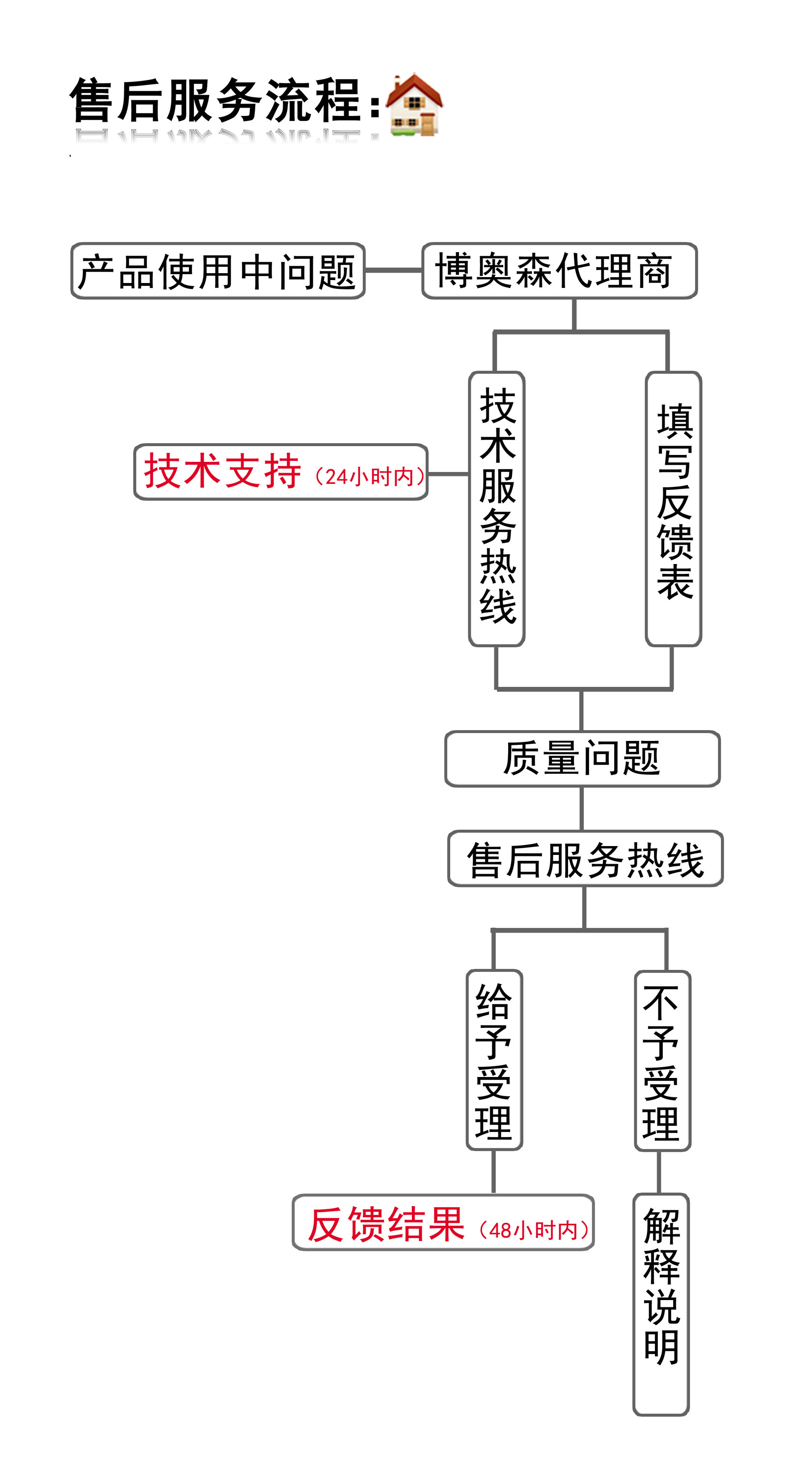 1、订购使用博奥森产品的客户,在使用产品过程中遇到问题,提出技术支持及其他请求时,我公司接到请求后的24个小时之内做出处理。