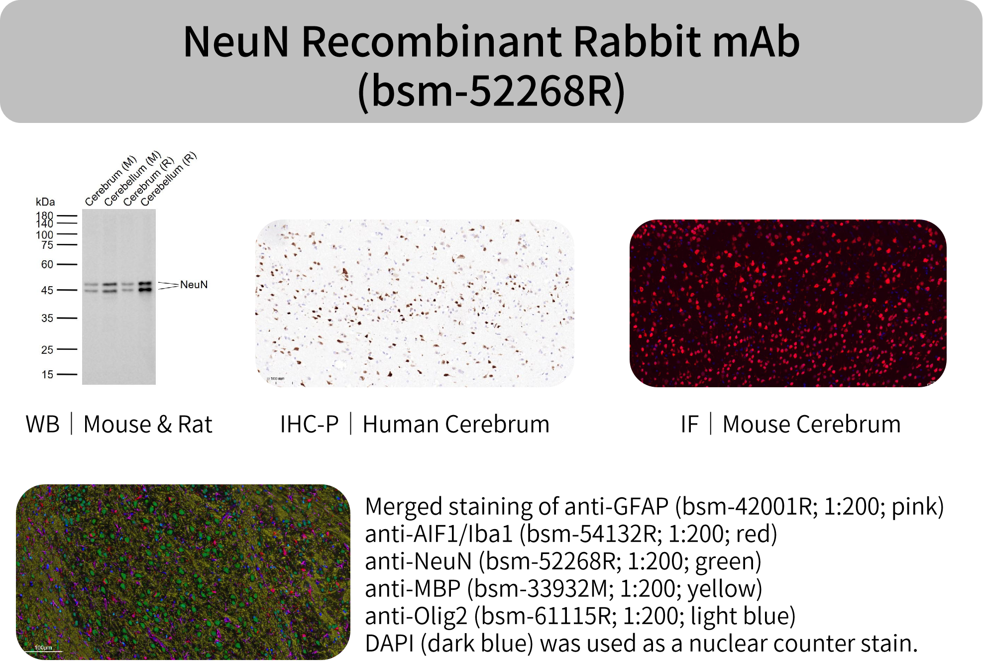 | NeuN | bs-1613R | Rabbit pAb | Mouse, Rat | WB, IHC-P, IHC-F |