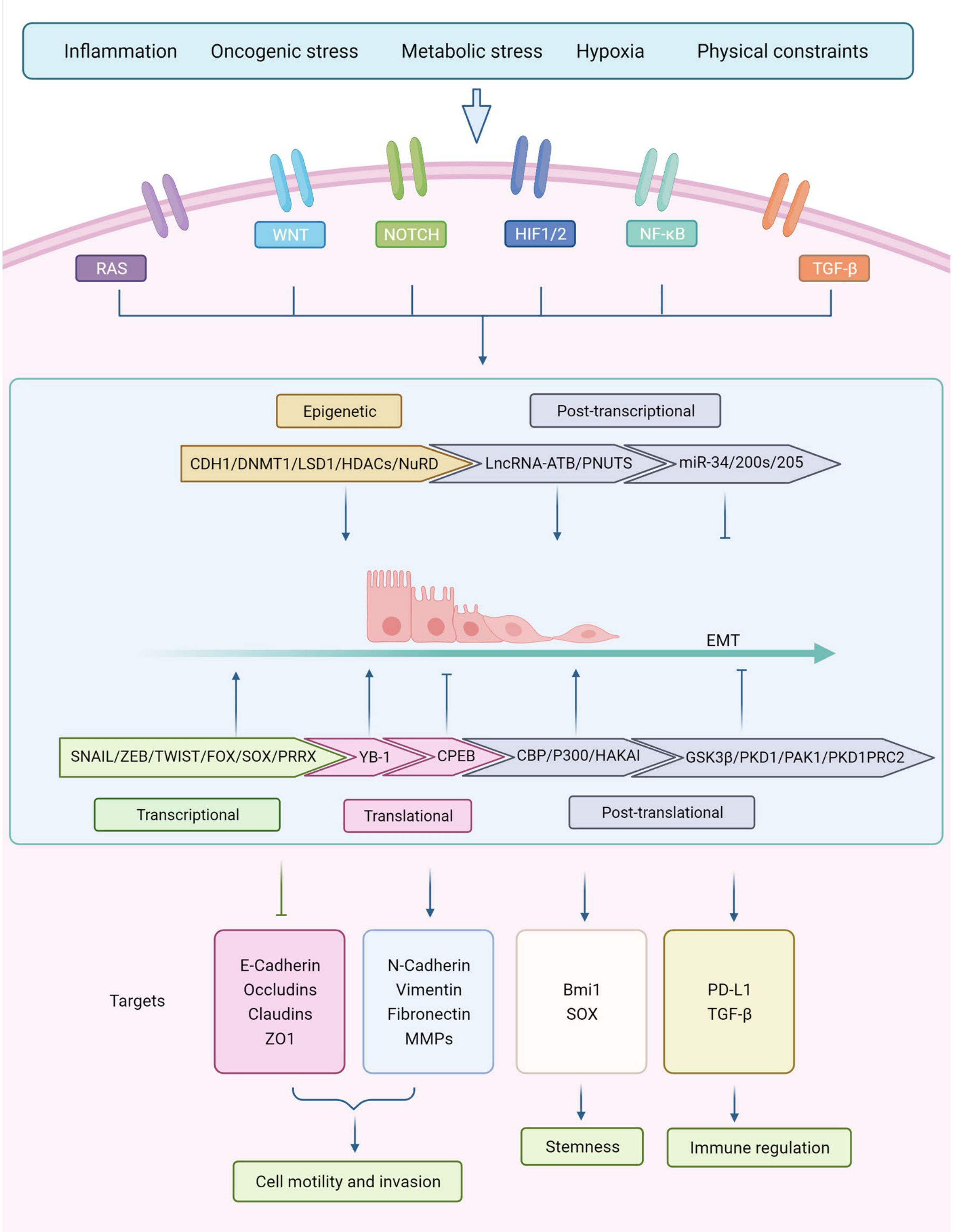 EMT的调控网络(图片来源:J Hematol Oncol. 2022 Sep 8;15(1):129.)