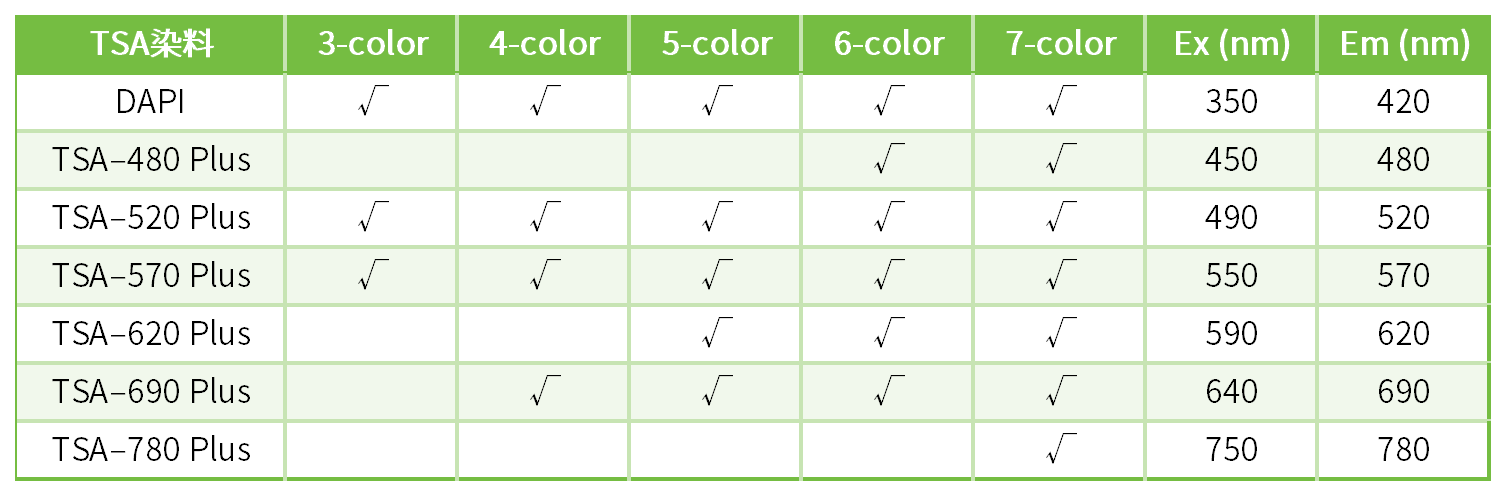 由于每次体系中都只有单一抗体孵育,因此无需担心抗体的交叉反应及一抗二抗种属匹配问题,摆脱了传统免疫荧光实验条件对抗体种属来源的限制和束缚。此试剂盒中的荧光染料可以单独或组合使用,能够实现单标、双标、三标以及更多重荧光放大/多重同源抗体荧光标记等功能。